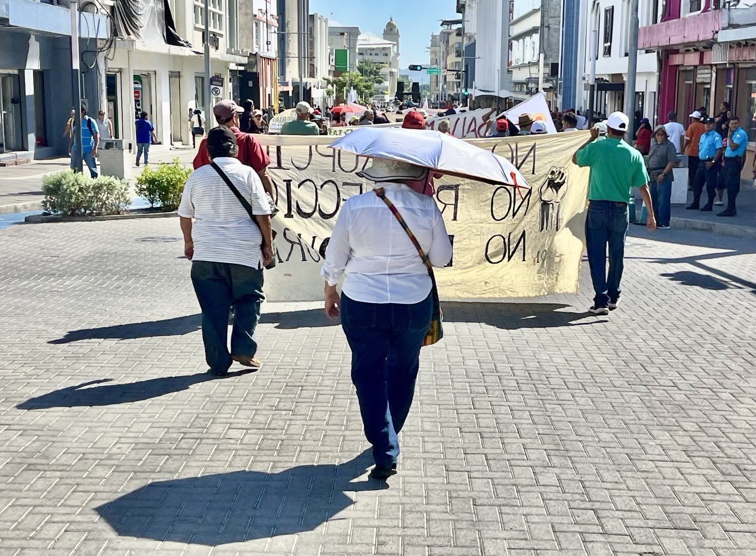 Los vendedores del centro remozado salen a mirar. En el mercado Hula-Hula, una docena de mujeres dejan sus puestos para grabar con el celular. Marchan pocos, pero los observan cientos, turistas incluidos.